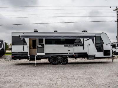 The lightweight Model I travel trailer by Brinkley is the perfect choice for those looking for an easy tow and at-home comforts! There is a drop-frame chassis, high-performance Road Armor suspension equalizer system, and Demco EZ Latch trailer coupler that automatically latches when dropped onto a hitch ball without the need of a safety pin. Additional exterior features include square Euro frameless windows, automotive-grade paint, full-width LED strip lighting in the pass-thru, and a pet & property security campside tie-down to keep your gear and furry friends safe. Inside, you'll be wowed by Brinkley's CraftSense wood trim construction, residential solid surface kitchen countertops, dimmable bedroom lights, and marine-grade neon LED shower lighting to name a few stand-out features!