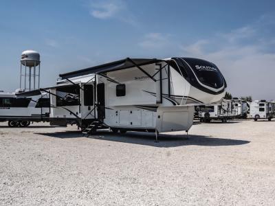 Choose a Solitude fifth wheel by Grand Design today, and experience full-time camping or extended-stay vacations with residential features, taller ceilings, deeper cabinets, and larger scenic windows!